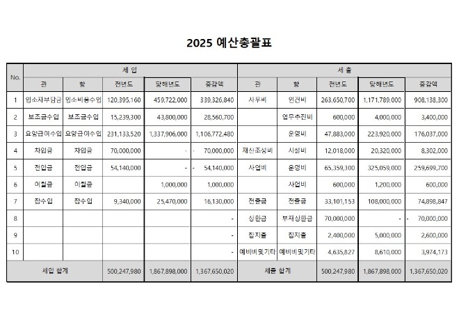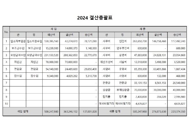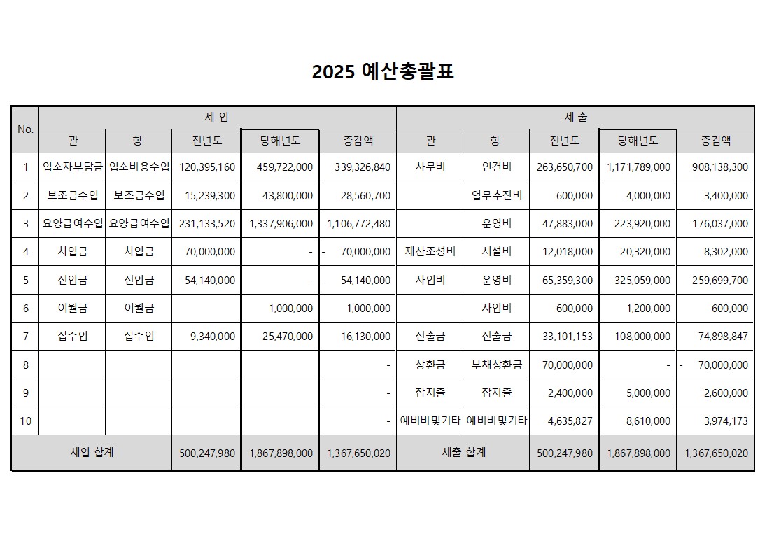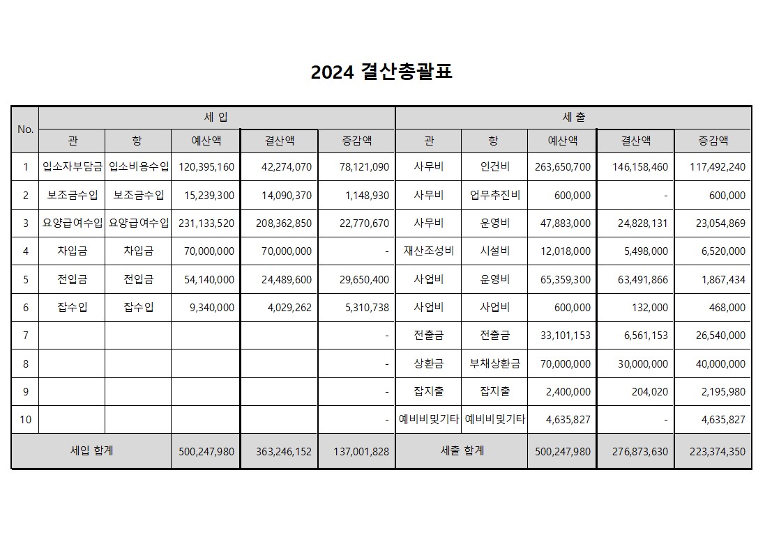 효산요양원 2024년 결산 및 2025년 예산 공고